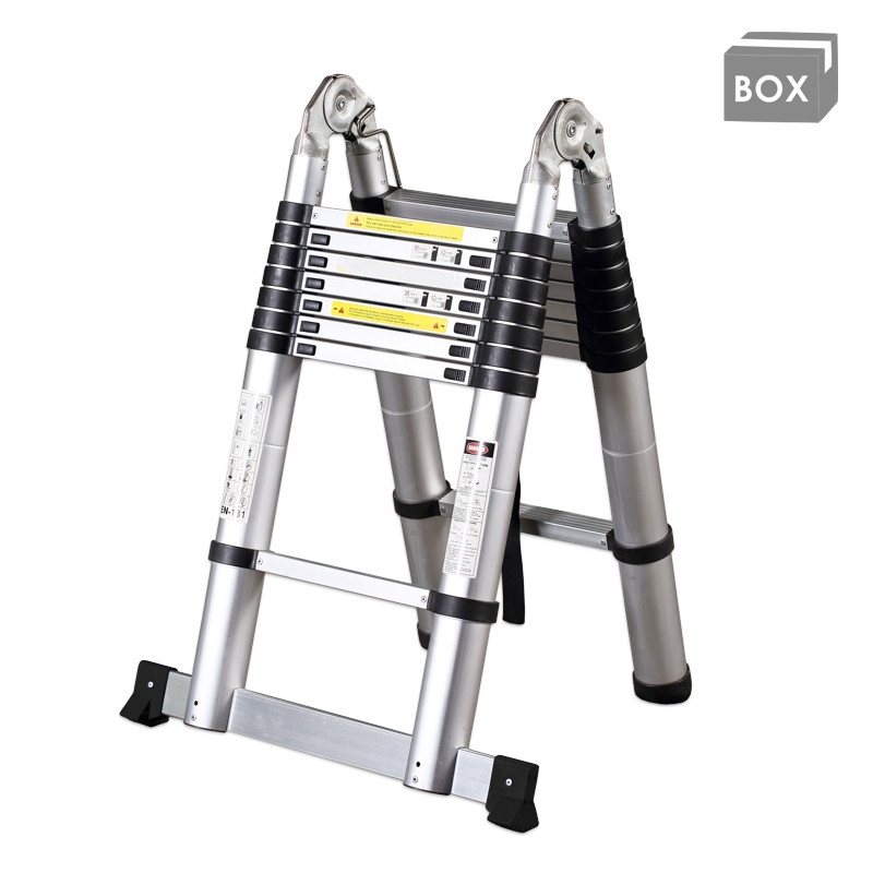 Drabina teleskopowa wykonana została z aluminium, dzięki czemu posiada lekką, wytrzymałą i odporną na warunki atmosferyczne konstrukcję.